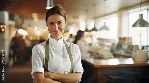 chef, portrait, people, staff, kitchen, hotel, cook, small business, business, eatery, working, uniform, professional, catering, job, service, profession, preparation, gastronomy, caucasian, woman, female, young, culinary, occupation, confident, african, smile, standing, happy, cookery, black, lifestyle, food industry, receipe, preparing