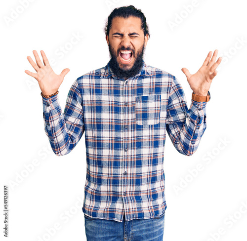 Young arab man wearing casual clothes celebrating mad and crazy for success with arms raised and closed eyes screaming excited. winner concept