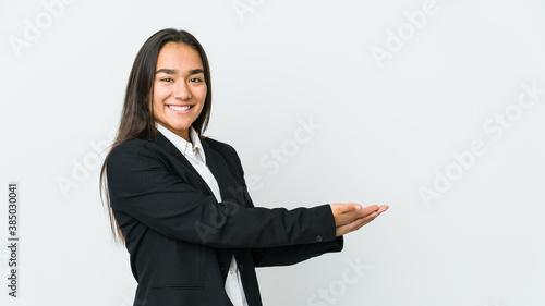 emotional, advertisement, advertising, arm, astonished, copy, copy space, excited, expressive, gesticulate, glad, holding, palm, pleased, presenting, product, showing, smiling, space, adult, amazed, asian, asian, background, beautiful, beauty, business, businesswoman, career, caucasian, executive, female, formal, girl, isolated, job, leader, manager, modern, occupation, person, portrait, pretty, professional, white, woman, work, men at work, young