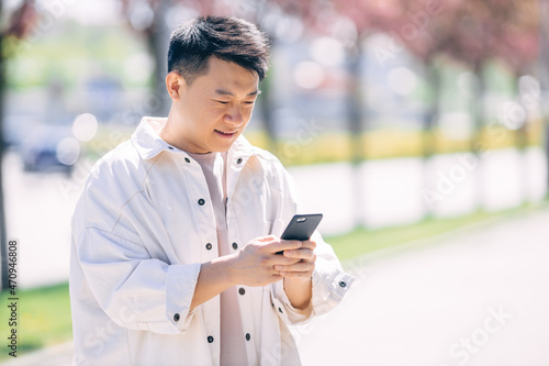 relaxed, listening, laughing, conversation, mobile phone, contraption, reading, trendy, using, network, stylish, confident, message, online, walking, electronic, joy, playing, screen, information, standing, alone, connection, cyberspace, smiling, texting, text message, clothes, electric, looking, device, communication, holiday maker, happy, man, 1, convenience, business, technology, young, city life, adult, lifestyle, cheerful, attractive, asian, building, street