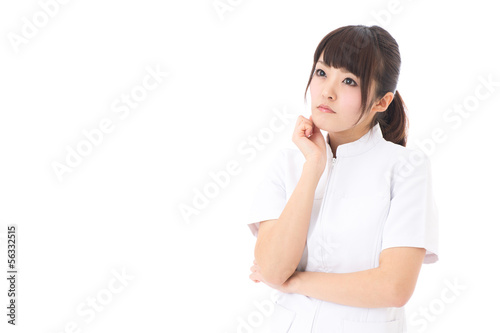 woman, nurse, labcoat, contemplate, recollect, deliberation, thinking, people, doctor, doctor, smile, medical care, hospital, medicine, surgery, laboratory, helper, waist up, sweet, beauty, clean, appealing, white, natural, health, alone, elegant, relax, japanese, chinese, asian, advertisement, cut-out, background