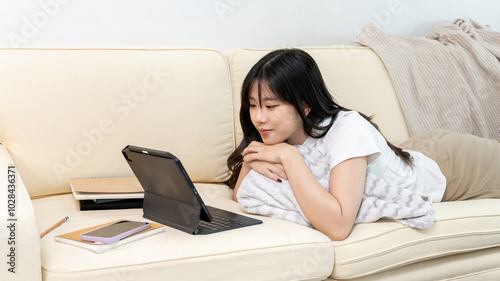 person, meeting, business, technology, communication, woman, businesswoman, desk, indoor, working, office, online, tablet, talking, computer, young, adult, asian, discussion, sitting, smiling, female, happy, digital, lifestyle, call, connection, cyberspace, entrepreneur, horizontal, cyberspace, man, photo, planning, remote, togetherness, video, young adult, color image, home, cheerful, day, conference call, telecommuting, brainstorming