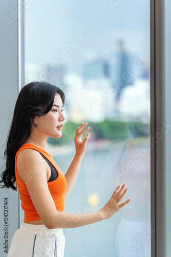 asian, woman, young, city, urban, fashion, confident, standing, indoor, window, skyline, casual attire, activewear, outfit, modern, lifestyle, people, female, thai, chinese, trendy, stylish, fitness, active, beauty, smart, relaxed, downtown, attractive, strength, independence, elegant, determined, energy, vibrant, metropolitan, health, looking, smiling, businesswoman, success, office, smile, window, indoor, sporty, clothing