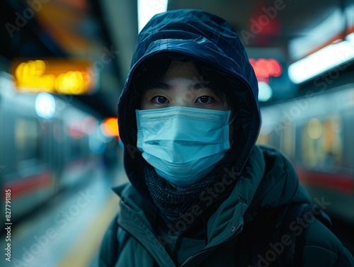 asian woman, face mask, railroad station, public health, pandemic, safety, protection, travel, public transportation, portrait, missy, health, disease, disease, infection, medicals, virus, flu, prevention, care, hygiene, community, transport, urban, city, lifestyle, modern, contemporary