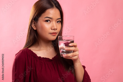 asian, beautiful, calorie, diet, drink, drinking, eating, female, fresh, girl, glasses, health, healthy, lady, lifestyle, meal, natural, nourishment, person, portrait, pure, studio, water, woman, young, pink