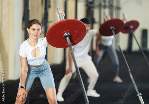 young, youth, girl, woman, female, man, male, caucasian, american, club, lifestyle, leisure, indoor, active, exercising, exercise, healthy, physical exercise, studio, gym, wellness, activewear, sport, motion, position, physical, class, practice, bodycare, motivated, body, bodybuilder, equipment, heavy, fitness, muscular, muscle, machine, power, strength, strong, weight, weight, arm, hand, barbell