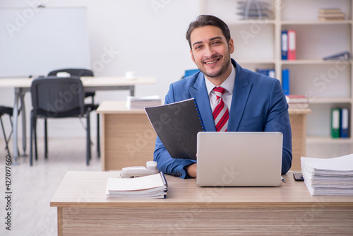 Young attractive employee working in the office
