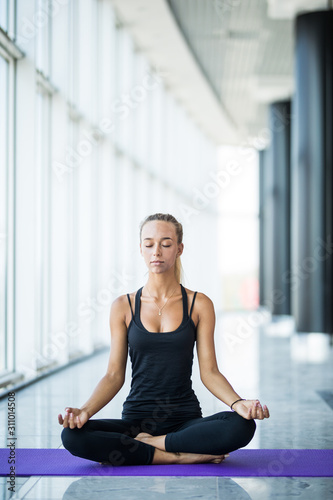 woman, girl, yoga, window, young, activewear, sky, relaxation, relax, pose, meditation, mat, lotus, lifestyle, lady, indoor, healthy, health, harmony, fit, female, exercise, energy, diet, calm, body, beautiful, balance, home, calmness, asana, weight loss