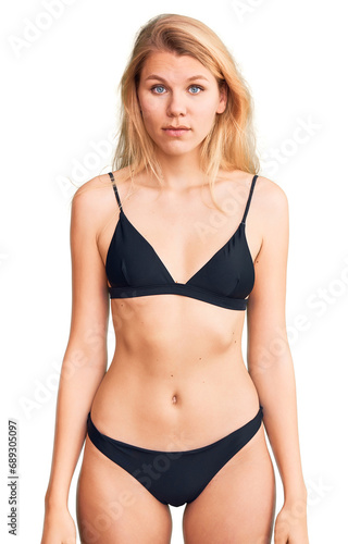 Young beautiful blonde woman wearing bikini looking sleepy and tired, exhausted for fatigue and hangover, lazy eyes in the morning.