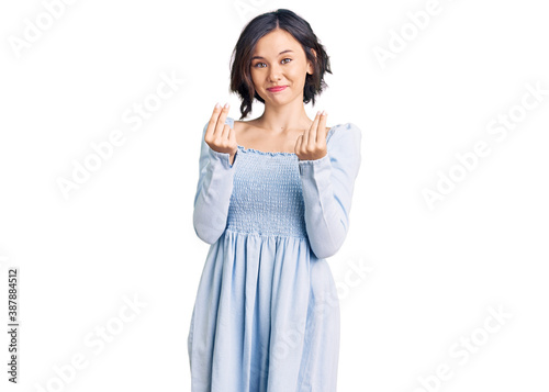 Young beautiful girl wearing casual clothes doing money gesture with hands, asking for salary payment, millionaire business