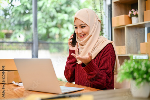 adult, arab, arabic, asian, attractive, background, beautiful, box, business, computer, delivery, e-business, entrepreneur, female, girl, happy, home, indoor, cyberspace, islamic, lifestyle, merchant, mobile phone, muslim, muslim, online, owner, package, people, phone, product, relaxation, shipping, sitting, smartphone, smile, technology, wireless, woman, work, young