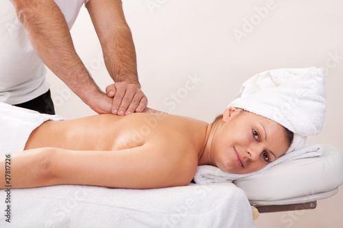 Young beautiful woman getting back massage