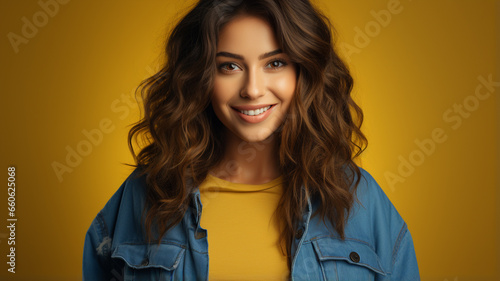 adult, background, beautiful, casual attire, caucasian, cheerful, confident, cool, face, fashion, female, girl, happiness, happy, hat, joy, lifestyle, looking, natural, honed, person, portrait, positive, smile, smiling, summer, teeth, woman, yellow, young