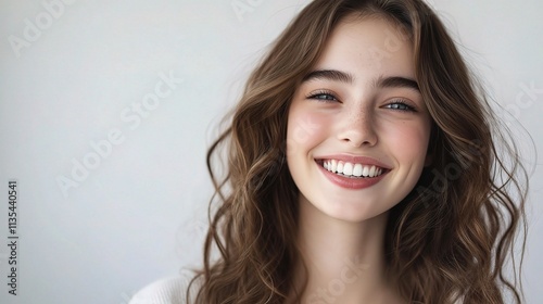 Young Beautiful Woman Smiling in Close-Up Shot on Light Background