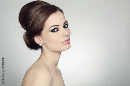 Young beautiful woman with stylish make-up and hair bun