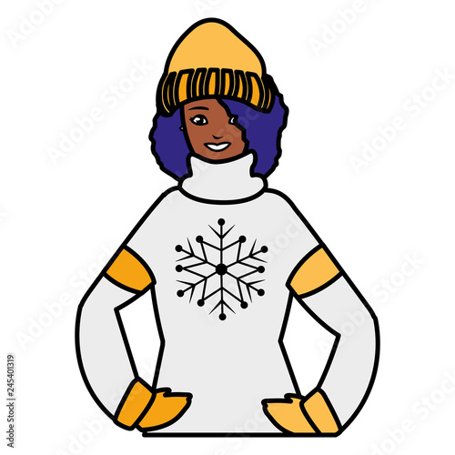 young black woman with winter clothes
