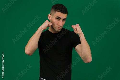 strength, fitness, fight, afro, dark, background, serious, healthy, art, anger, young, green, strong, isolated, arab, cool, curly hair, pose, caucasian, power, hand, afraid, hair, fighter, working out, angry, attractive, teenage, punch, body, fist, upset, adult, problem, defense, red, ready, casual attire, redhead, hispanic, guy, health, work out, boxing, emotion, watch, closeup, t-shirt