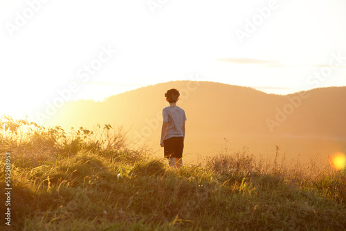 young, boy, looking, mountain, sunset, light, nature, sky, outdoors, sunrise, landscape, escape, grass, coastal, explore, natural, nsw, view, golden hour, mountain, headland, solo, get-away, dawn, bushland, youth, sunshine, freedom, free, activity, high, fresh air, preteen, wide open
