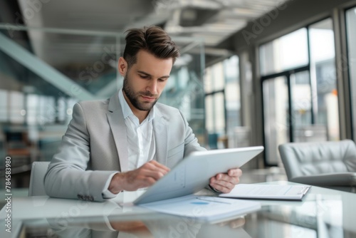 Young business man executive holding pad computer at work.