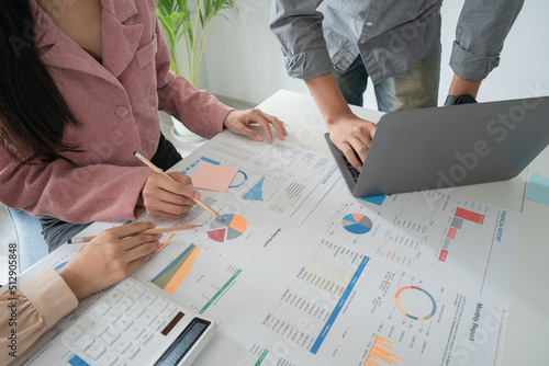 Young business team working with business report document on office desk. Brainstorming Business People Design Planning, Brainstorming Planning Partnership.