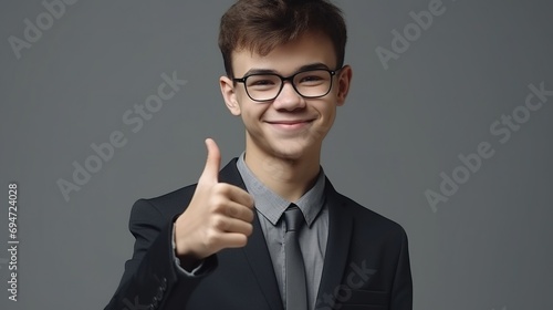 success, boy, suit, goggles, smile, face, children, goggles, hand, thumb up, business, smart, businessman, entrepreneur, formal, executive, graduation, intelligent, occupation, school, thumb, education, student, office, career, expression, schoolboy, clever, joy, boss, company, isolated, model, serious, confident, portrait, gesture, nerd, blur, caucasian, childhood, cute, stylish, cheerful, little, eyeglass, style, background, trendy