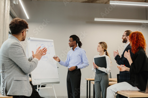 business, businessman, businesswoman, team, teamwork, collaboration, meeting, presentation, strategy, office, corporate, work, job, career, success, achievement, goal, target, motivation, inspiration, leadership, training, coaching, learning, development, skill, cognition, communication, discussion, explaining, teaching, applause, applause, appreciation, recognition, support, encouragement, diversity, inclusion, multicultural, international, global, young, adult, professional, executive, manager, employee, men at work