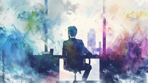 Young businessman in a watercolor artistic scene.