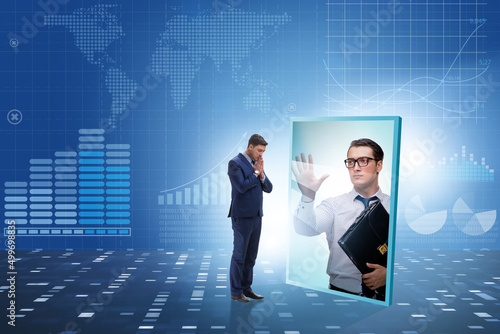Young businessman in alter ego concept