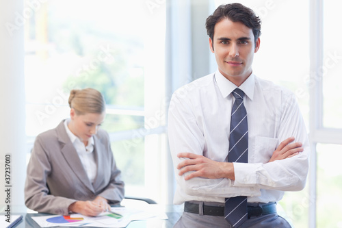 two people, missy, caucasian appearance, attractive, background, beautiful, boss, business, businessman, businesswoman, chairman, charismatic, charming, communication, company, conference, confident, corporate, corporation, director, discussion, elegant, employee, executive, foreground, photogenic, happy, head, manager, meeting, office, personnel, positive, presentation, serious, smile, staff, standing, table, talking, team, teamwork, work, desk