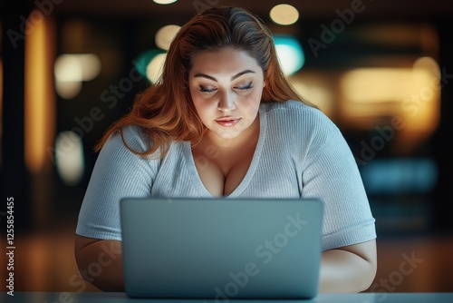 businesswoman, laptop, office, working, young, modern, late, hours, professional, sharpened, serene, calm, environment, technology, soft, lighting, portrait, plum, engagement, concentration, atmosphere, day, productive, workplace, hair, sitting, woman, attire, lifestyle, multitask, digital, browsing, innovation, career, education, female, success, comfortable, connection, remote