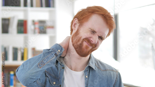 redhead, beard, man, casual attire, designer, men at work, student, washroom, room, distraught, depression, despair, disappointment, neck, pain, sleepy, muscle, sleep, yawning, sofa, emotional stress, danger, frustration, cephalalgia, workload, overload