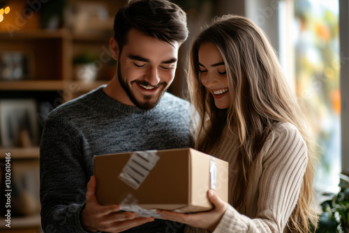 youth, portrait, positive, order, service, friends, expression, deliver, young, 2, post, girl, love, gesture, couple, human relationships, teenage, partner, people, person, courier, smile, indoor, laugh, together, man, woman, caucasian, delivery, box, express, shipping, postal, holding, date, package, teenage, happy, man