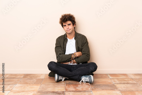 man, man, people, person, male, guy, photogenic, young, adult, hispanic, caucasian, seat, to sit, sitting, floor, full, body, full-length, upset, sad, feeling, bad, unhappy, problem, confused, oops, mistake, angry, stress, feeling, problem, frustration, frustrated, thinking, difficulty