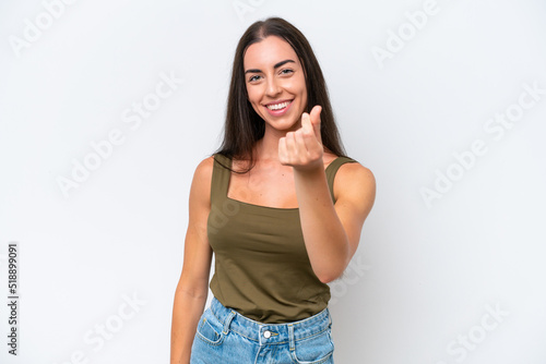 girl, woman, people, person, female, attractive, beauty, pretty, beautiful, youth, young, adult, brunette, 1, portrait, model, caucasian, background, isolated, wall, white, blank, advertising, cash, concept, economic, financial, gesture, money, rich, signs, economy, happy, happiness, good, positive