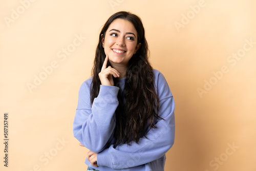 adult, background, brunette, caucasian, clueless, concept, confused, expressing, expression, female, imagining, hair, idea, imagine, isolated, looking, pensive, people, person, portrait, question, smart, solution, teenage, teenage, thinks, thinking, thoughtful, thought, up, wall, white, woman, wonder, young, youth, girl