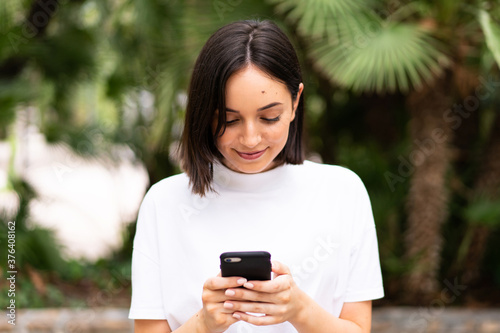 Young caucasian woman using a phone at outdoors