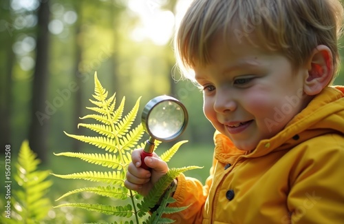 boy, children, children, kindergartner, magnifier, magnifying glass, leaf, fern, nature, forest, summer, vacation, explore, exploring, discover, learning, curiosity, inquisitive, happy, smile, leisure, activity, childhood, children, fun, play, school, education, cognition, interest, biology, botanic, ecology, environment, eco, green, sunlight, tree, park, wood, travel, adventure, holiday, hiking, walking, closeup, detail, lens