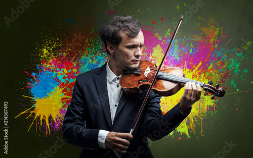 Young classical violinist musician with colorful splotch wallpaper