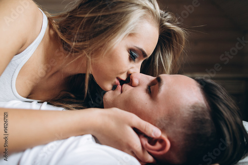 Young couple flirting and spending time at home.