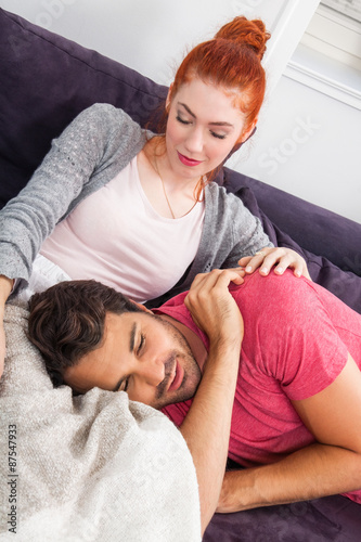 couple, love, lying, man, partner, human relationships, tender, tenderness, touch, woman, young, comfortable, cosy, home, late, sofa, watching, evening, sleepy, television, weekend, hair, remote control, leisure, relaxation, recreation, together, blanket, living room, comfort, cushion, harmony, girlfriend, lap, boyfriend