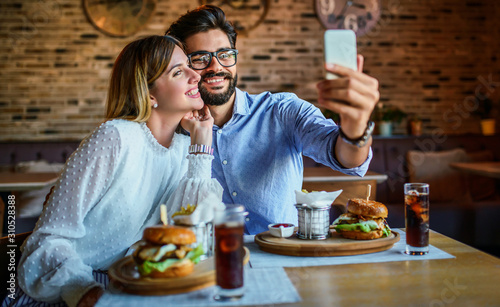 young, beautiful, loving, couple, boyfriend, girlfriend, sitting, dating, cafes, cafes, eatery, bar, bistro, eating, sandwich, chips, salad, drinking, juice, coke, enjoying, breakfast, lunch, meal, ravenous, nourishment, delicious, taste, tasty, fast food, junk food, hedonism, relationship, inside, indoor, male, female, 2, people, hot drink, drink, smile, joy, meeting, student, casual attire