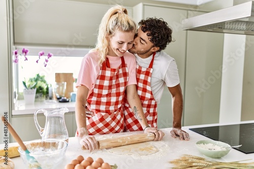 apartment, apron, bake, baker, bakery, baking, bread, cook, cooking, couple, cookery, dough, egg, enjoy, family, flour, food, fun, hand, happy, home, homemade, house, indoor, kiss, kissing, kitchen, kitchen utensile, massaging, kneading, love, lunch, man, meal, people, portrait, preparation, human relationships, romantic, smile, smiling, standing, table, together, togetherness, 2, woman, young