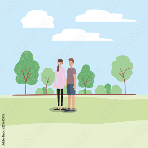 young couple walking on the park