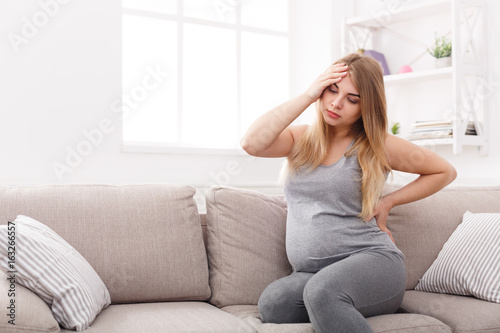 Young expectant blonde with headache and backache