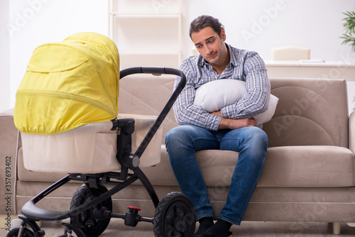 baby, eltern, children, family, home, care, newborn, infant, new, father, childcare center, born, parenting, father, nursing, man, pushchair, pushchair, babysitting, husband, caring, fatherhood, paternal, leaves, son, daughter, taking, looking, after, children, sleeping, sleepy, exhausted, business, working, vacation, boring, bored, stress, stressed, quarantine, isolation, virus, social