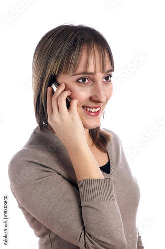 adult, attractive, background, beautiful, beauty, black, brown, brunette, business, businesswoman, communication, copy, copy space, corporate, cute, female, girl, hand, happiness, happy, holding, isolated, joy, natural, old, 1, people, person, phone, portrait, pretty, professional, sexy, shirt, sitting, smiling, space, student, style, success, successful, talking, phone, white, woman, young