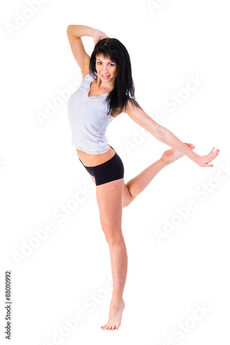 stretch, beautiful, light, person, sport, fit, exercising, energy, girl, attractive, beauty, fitness, woman, white, athlete, body, care, health, gym, dancer, aerobic, muscle, strong, isolated, young, adult, female, brunette, lifestyle, background, training, 1, fresh, portrait, dance, pose, human, life, yoga, pretty, power, slim, leg, trainer, sexy