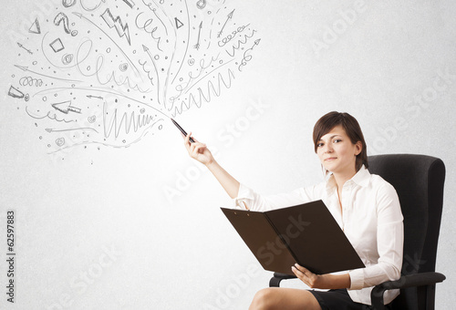 Young girl drawing and skteching abstract lines