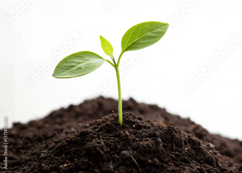 young green plant seedling growing from soil isolated on white background– Symbol of Growth, Nature, and Sustainability"