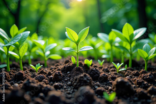 Young Green Seedlings Growing Vibrantly in Rich Fertile Soil